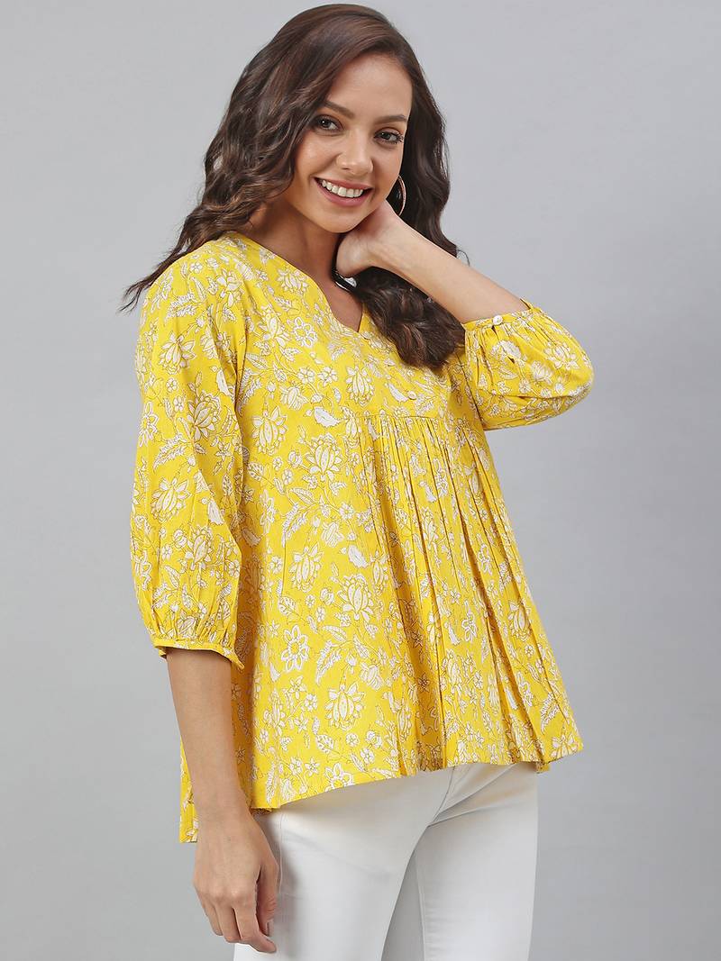 | Product Name | Yellow Printed Cotton Cotton Tops | |