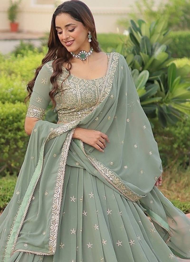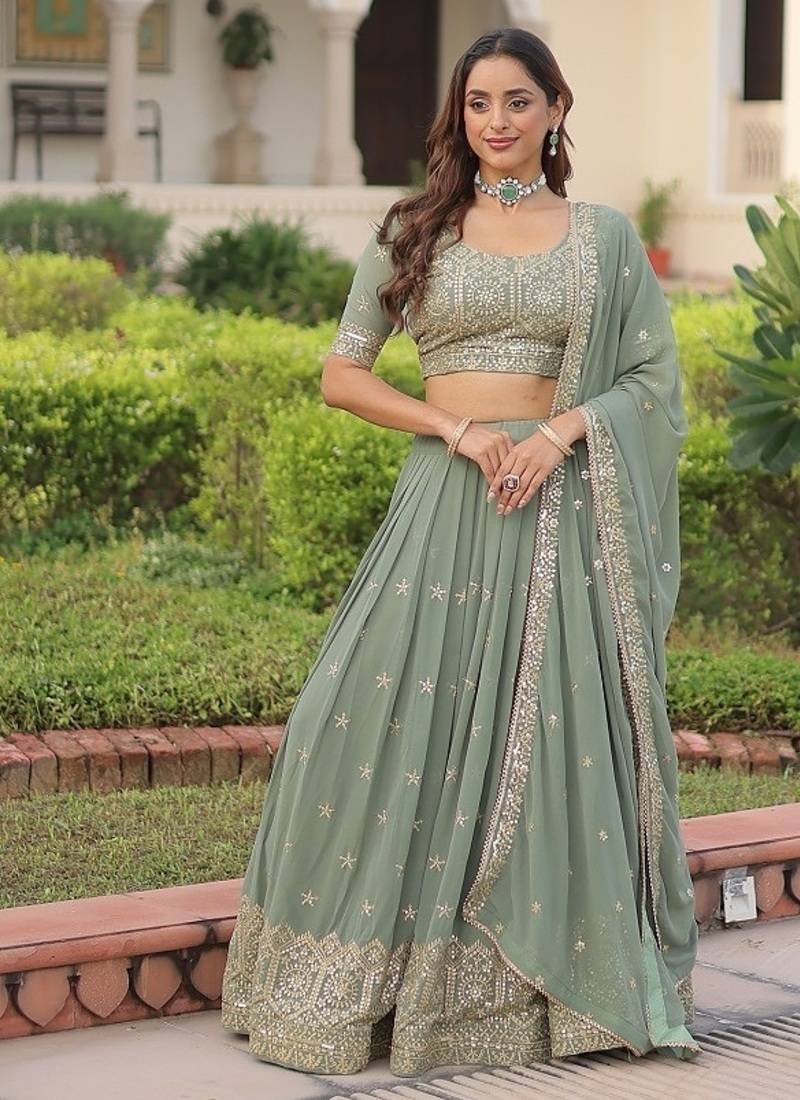 Designer faux georgette with sequins & zari multi embroidered work wedding lehenga choli