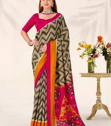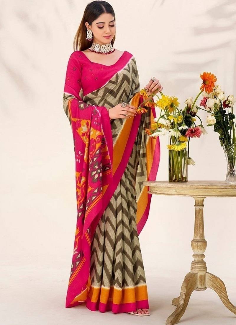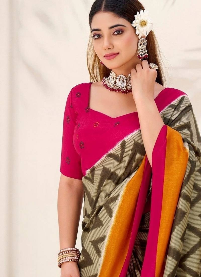 Mehendi tassar silk leheriya printed saree with unstitched blouse