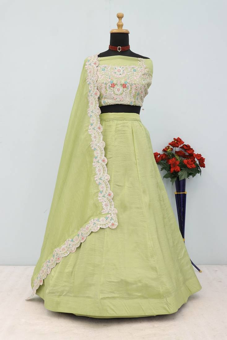| Product Name | Pista Gold Crush Sequins And Thread Embroidery Work Unstitched Lehenga Choli | |