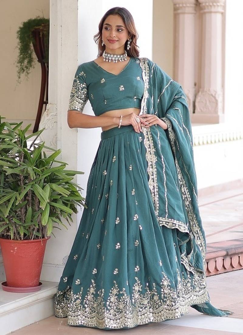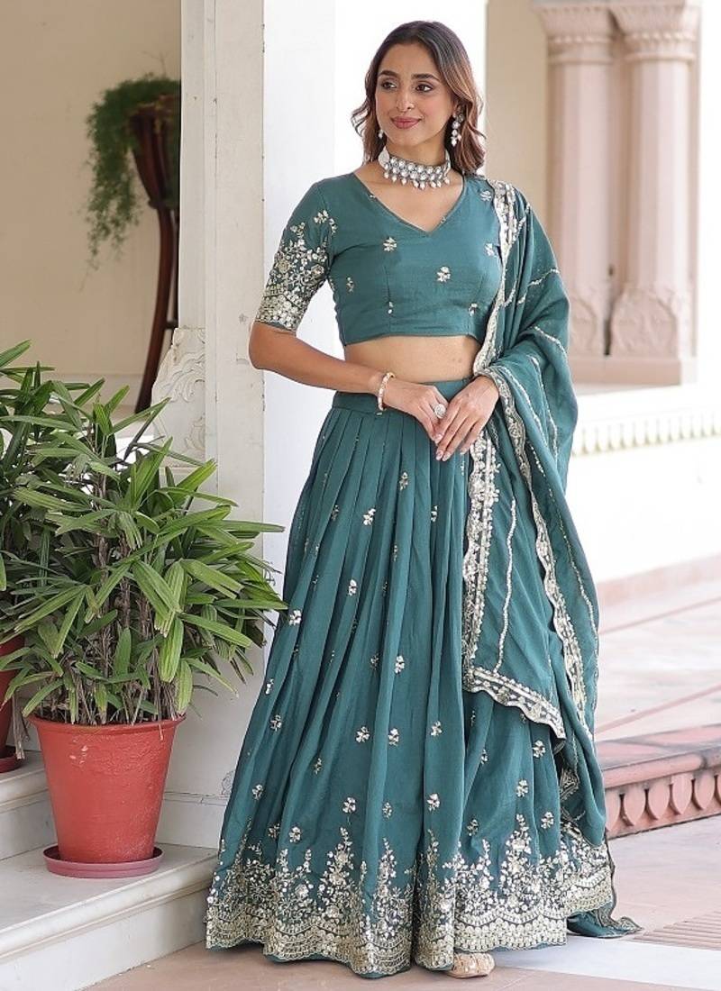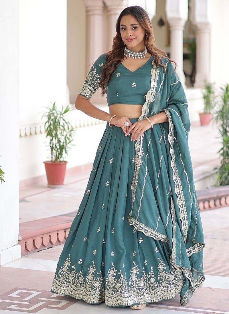Rama vichitra silk with heavy sequins & thread embroidered work wedding lehenga choli