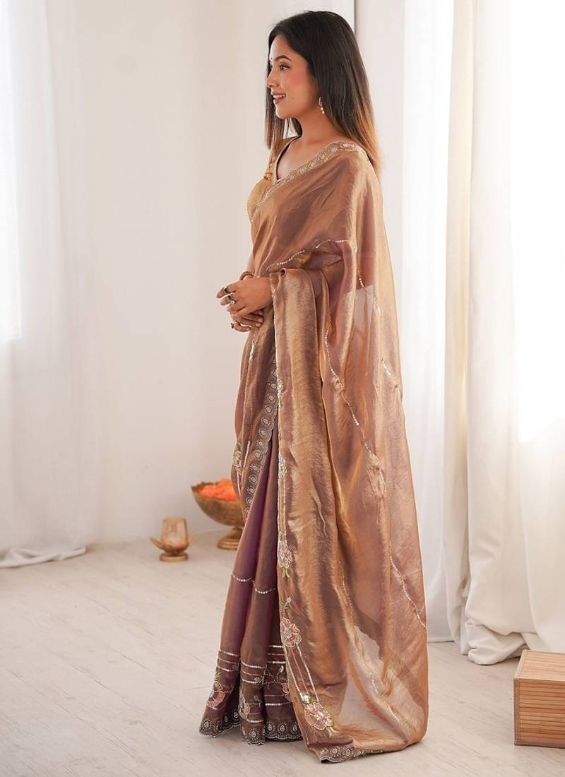 | Product Name | Rust Fendy Satin With Beads Embroidered Work With Stone Border Work Saree With Unstitched Blouse | |
