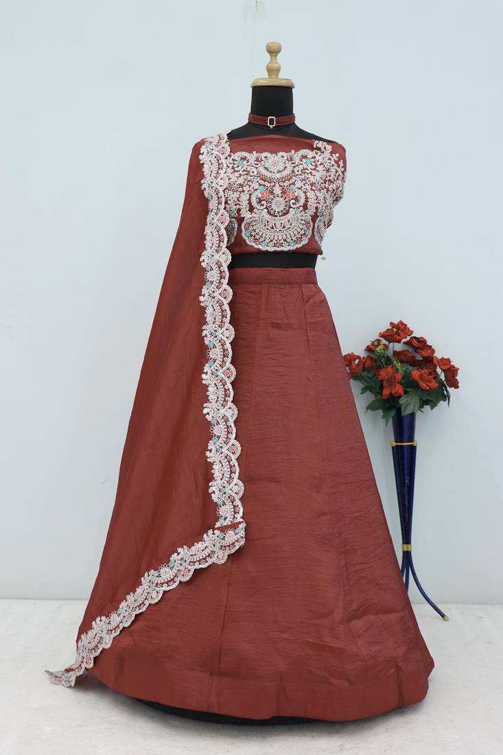 | Product Name | Rust Gold Crush Sequins And Thread Embroidery Work Unstitched Lehenga Choli | |