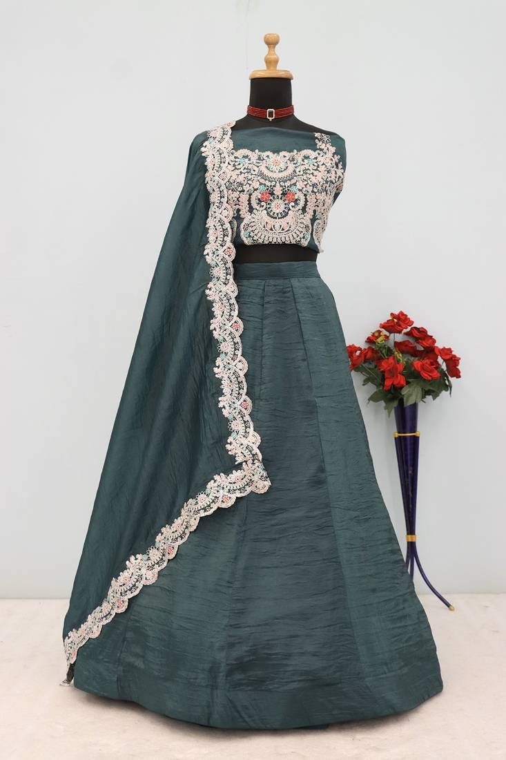 | Product Name | Teal Gold Crush Sequins And Thread Embroidery Work Unstitched Lehenga Choli | |