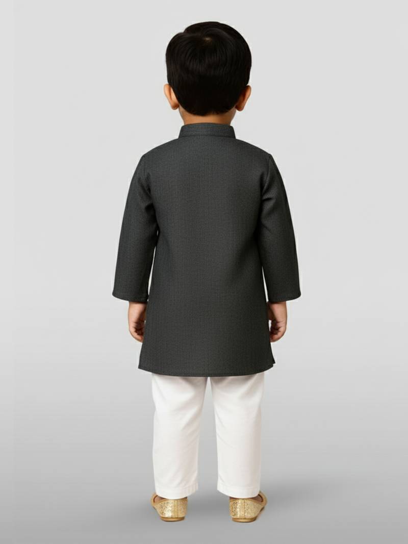 Black cotton printed kurta set with white pyjama - diwali special