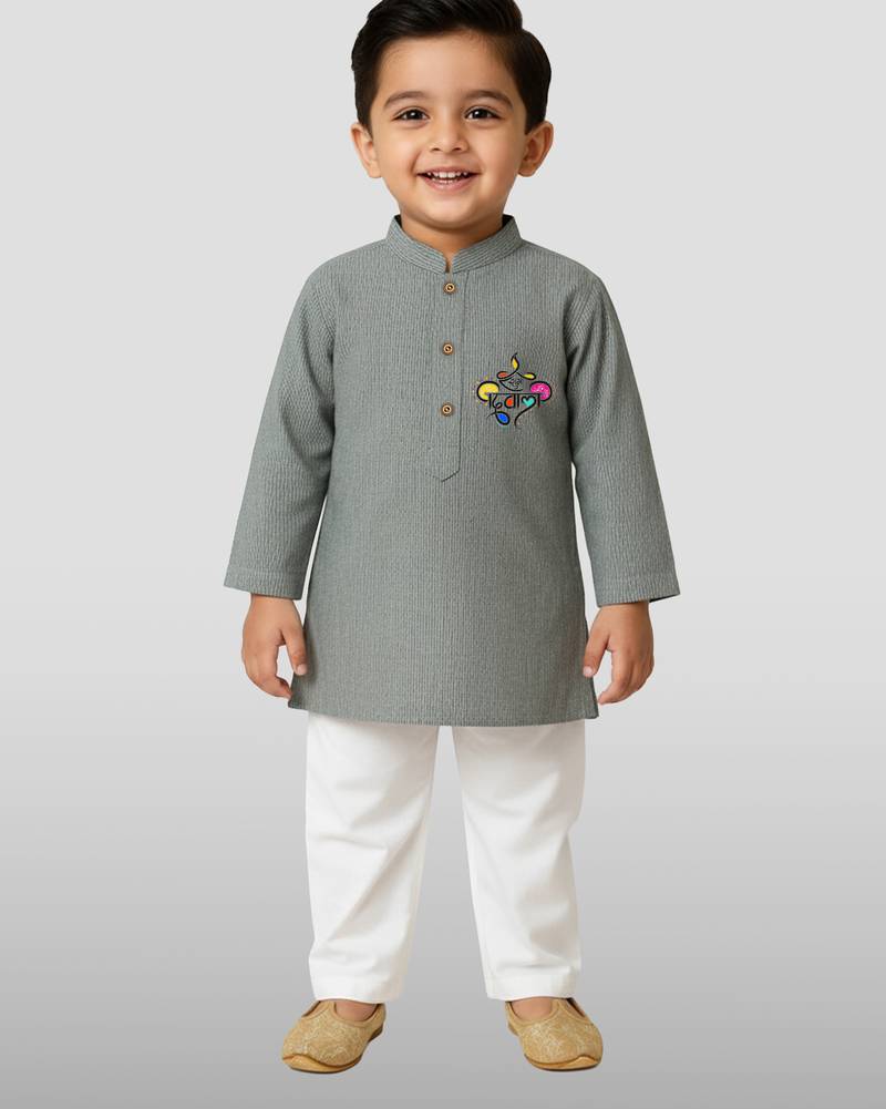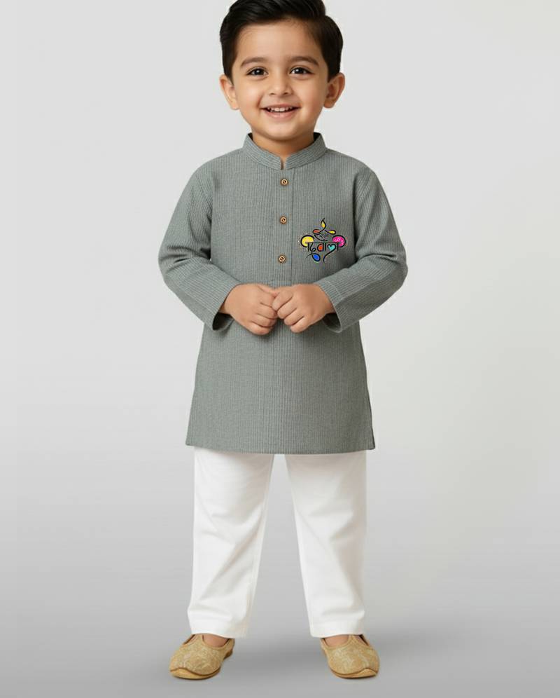 Product Name | Grey Cotton Printed Kurta Set With White Pyjama Diwali Special | |
