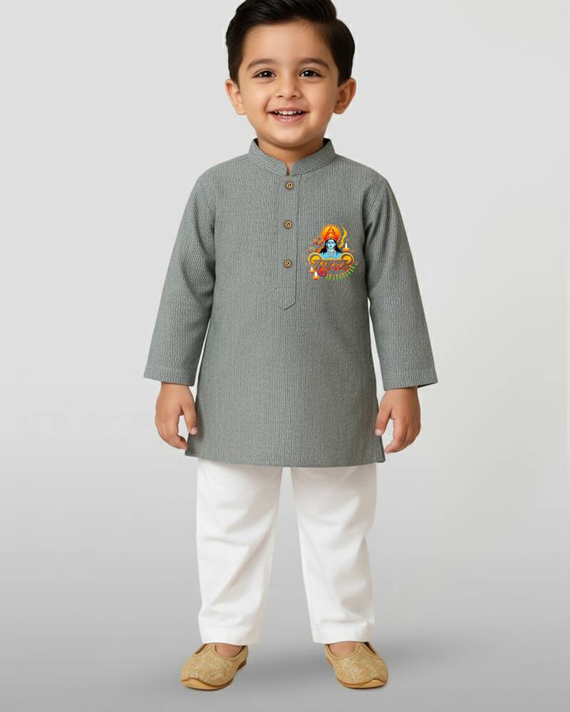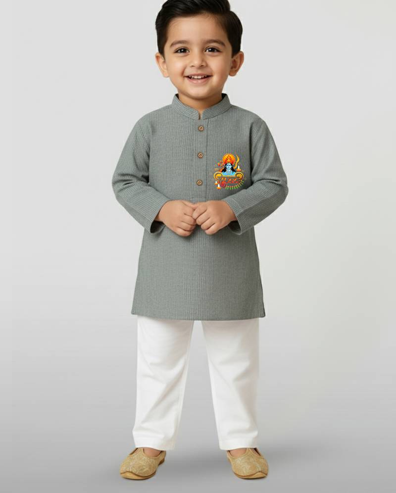 Product Name | Grey Cotton Printed Kurta Set With White Pyjama Diwali Special | |
