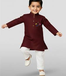 Maroon cotton printed kurta set with white pyjama - diwali special