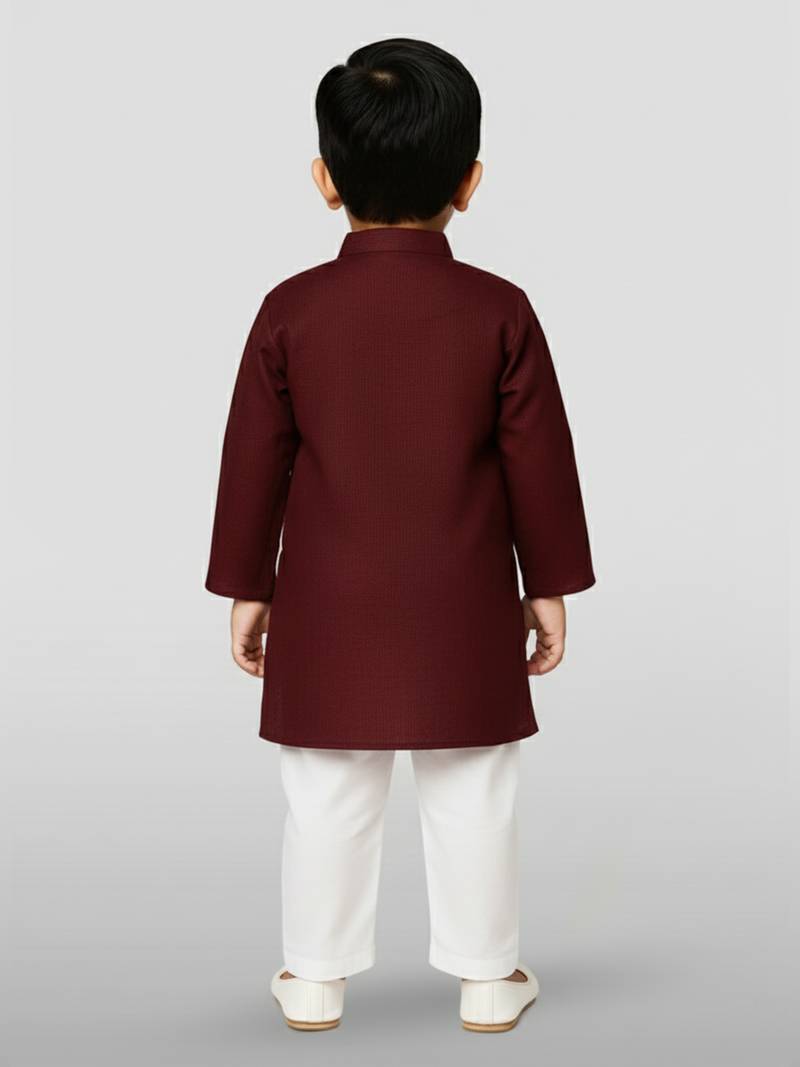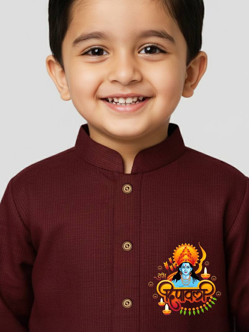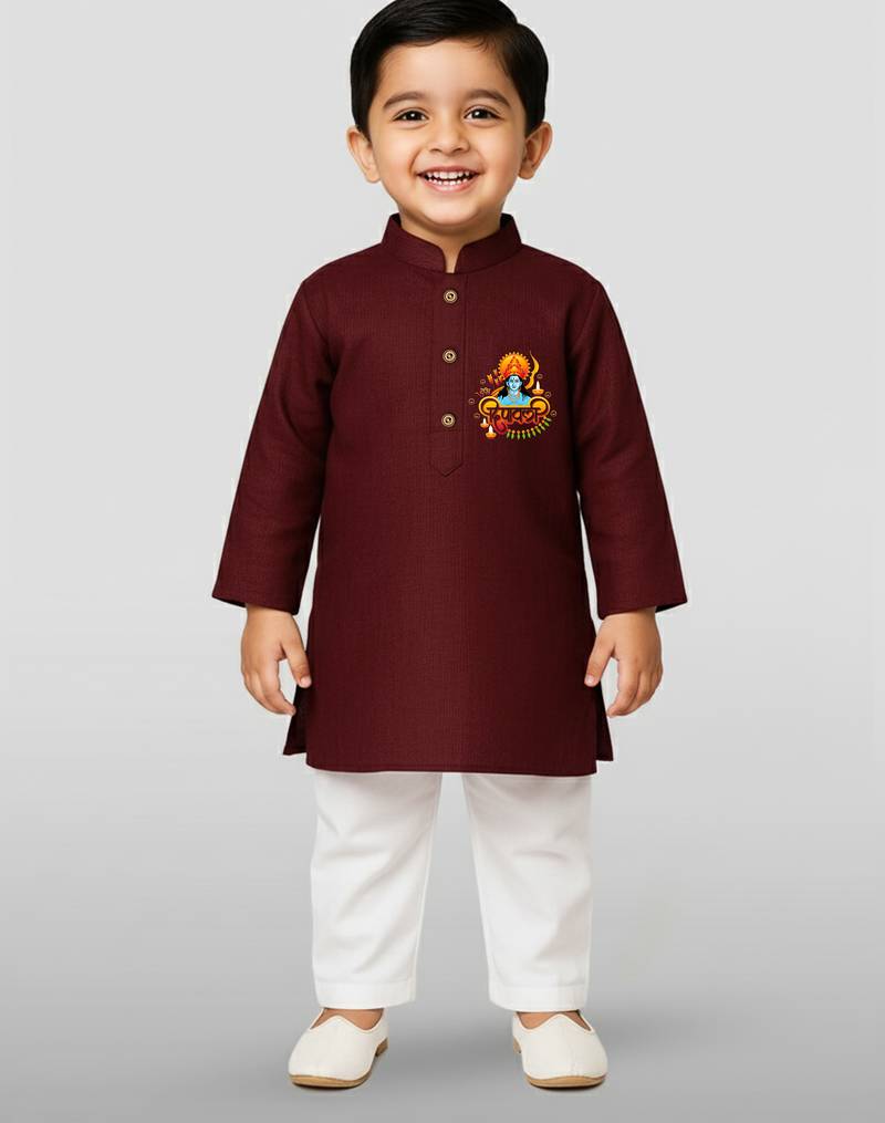Maroon cotton printed kurta set with white pyjama - diwali special