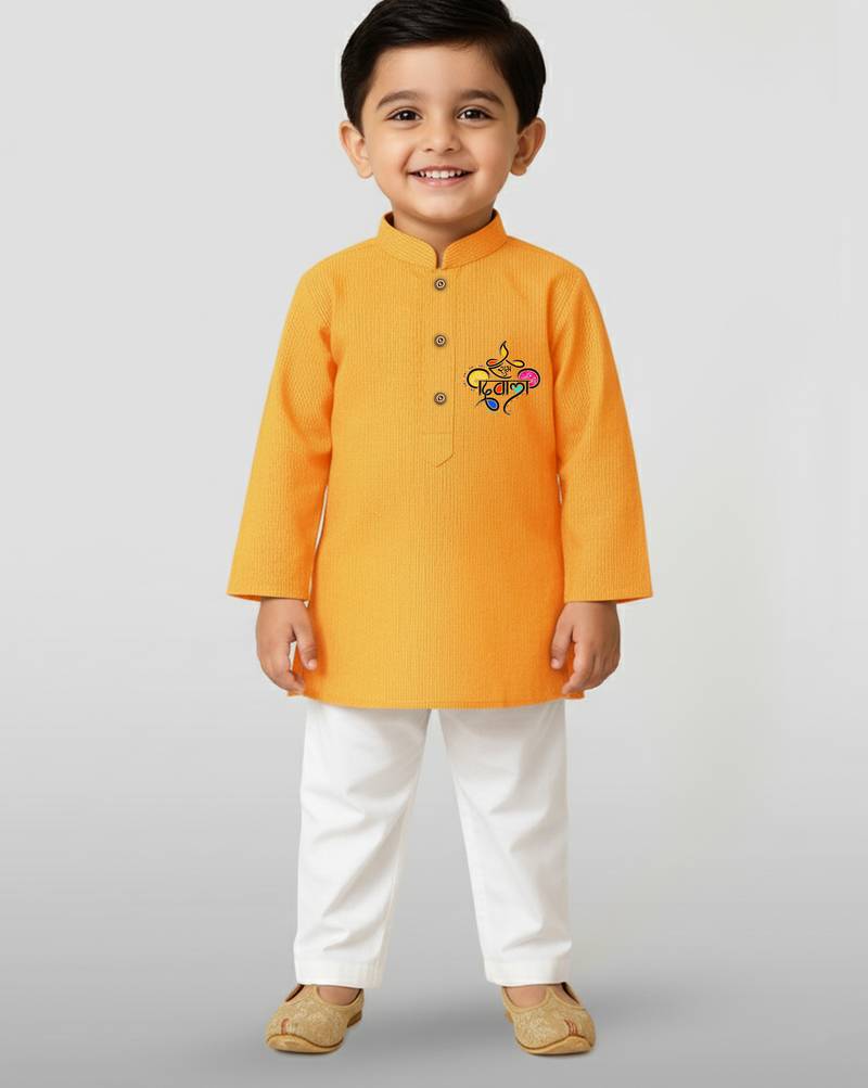 Product Description | Let Your Child Glow This Festive Season With Jbn Creations' Mustard Cotton Kurta Set. Features Vibrant Placement Print With Traditional Figure Motifs On Premium Cotton Fabric, Paired With Comfortable White Cotton Pyjama. Perfect For Diwali, Festive Glitz, And Celebrating Timeless Traditions. |