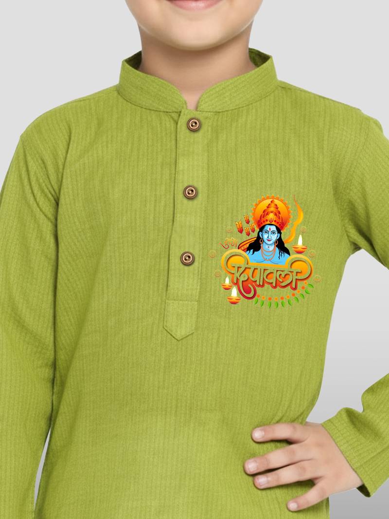 Product Name | Olive Green Cotton Printed Kurta Set With White Pyjama Diwali Special | |