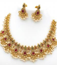 | Product Name | Antique Gold Plated Ethnic Choker Set With Ruby Red Stones & Pearls | Traditional Indian Jewelry For Weddings | |