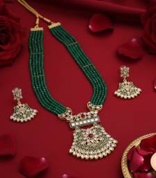 | Product Name | Green Beaded Kundan Necklace Earrings Set | Handcrafted Gold Plated Ethnic Jewelry Set | |