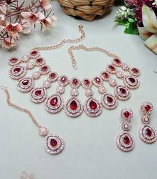 | Product Name | Rose Gold Plated Necklace Set With Earrings & Maang Tikka For Women Sparkling Bridal Party Jewelry | |