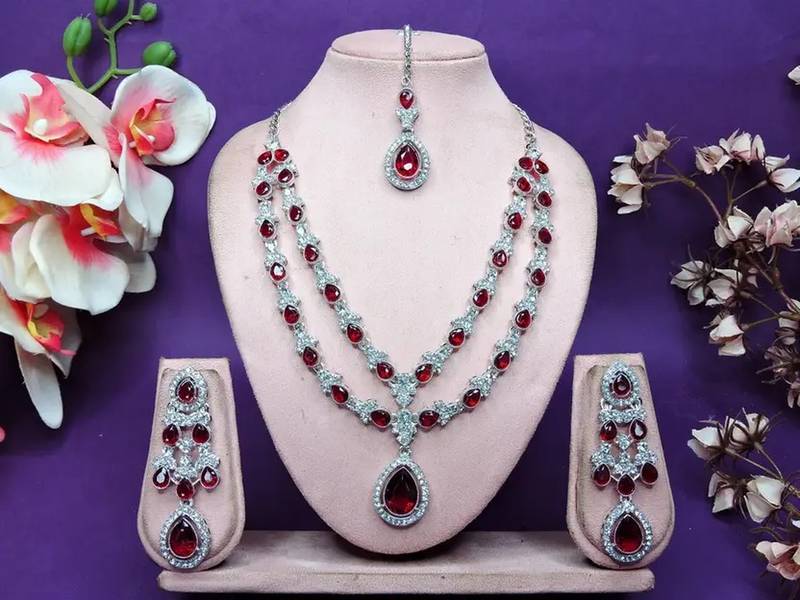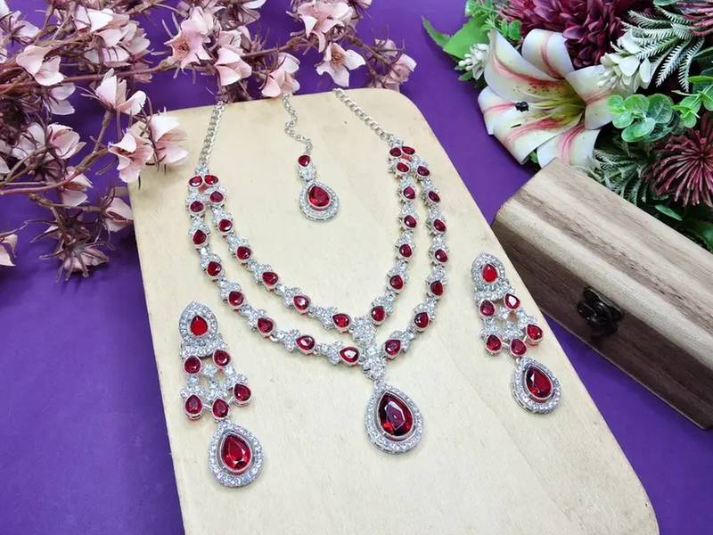 | Product Description | Shine As Bright As Your Big Day With This Necklace Set, Exquisitely Handcrafted To Capture Hearts And Camera Flashes. The Set Includes: Double Layered Teardrop Necklace With Brilliant Artificial Stones Matching Chandelier Earrings Featuring Cascading Crystal Drops Coordinating Maang Tikka With A Classic Teardrop Centerpiece High‑Quality Polished Alloy Base For Long‑Lasting Sparkle And Comfort Lightweight Design That Sits Beautifully Against Any Neckline Perfect For Weddings, Receptions, Sangeet Ceremonies, Festive Parties, Or Any Special Occasion, This Versatile Set Complements Lehengas, Sarees, Gowns, And Indo‑Western Outfits Alike. Its Timeless Elegance Makes It An Ideal Choice For Brides, Bridesmaids, And Party‑Wear Aficionados. |