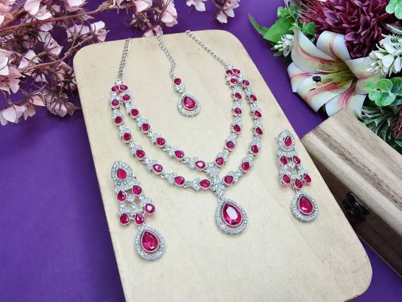 | Product Description | Shine As Bright As Your Big Day With This Necklace Set, Exquisitely Handcrafted To Capture Hearts And Camera Flashes. The Set Includes: Double Layered Teardrop Necklace With Brilliant Artificial Stones Matching Chandelier Earrings Featuring Cascading Crystal Drops Coordinating Maang Tikka With A Classic Teardrop Centerpiece High‑Quality Polished Alloy Base For Long‑Lasting Sparkle And Comfort Lightweight Design That Sits Beautifully Against Any Neckline Perfect For Weddings, Receptions, Sangeet Ceremonies, Festive Parties, Or Any Special Occasion, This Versatile Set Complements Lehengas, Sarees, Gowns, And Indo‑Western Outfits Alike. Its Timeless Elegance Makes It An Ideal Choice For Brides, Bridesmaids, And Party‑Wear Aficionados. |