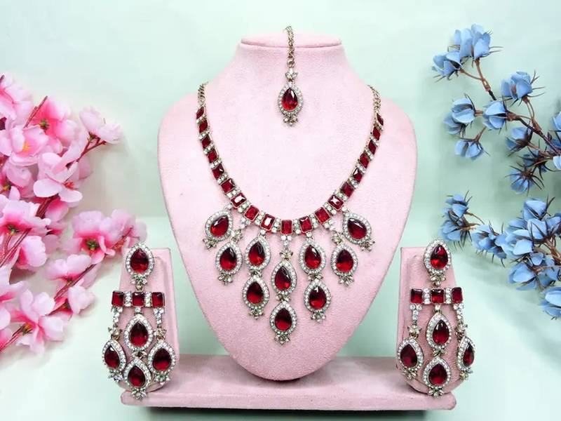 | Product Name | Teardrop Bridal Necklace Set With Earrings & Maang Tikka Ethnic Wedding Jewelry For Brides & Parties | |