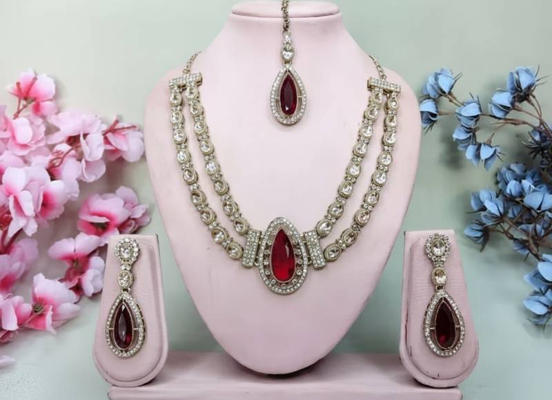 | Product Description | Shine As Bright As Your Big Day With This Necklace Set, Exquisitely Handcrafted To Capture Hearts And Camera Flashes. The Set Includes: Double Layered Teardrop Necklace With Brilliant Artificial Stones Matching Chandelier Earrings Featuring Cascading Crystal Drops Coordinating Maang Tikka With A Classic Teardrop Centerpiece High‑Quality Polished Alloy Base For Long‑Lasting Sparkle And Comfort Lightweight Design That Sits Beautifully Against Any Neckline Perfect For Weddings, Receptions, Sangeet Ceremonies, Festive Parties, Or Any Special Occasion, This Versatile Set Complements Lehengas, Sarees, Gowns, And Indo‑Western Outfits Alike. Its Timeless Elegance Makes It An Ideal Choice For Brides, Bridesmaids, And Party‑Wear Aficionados. |