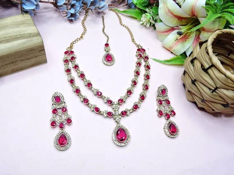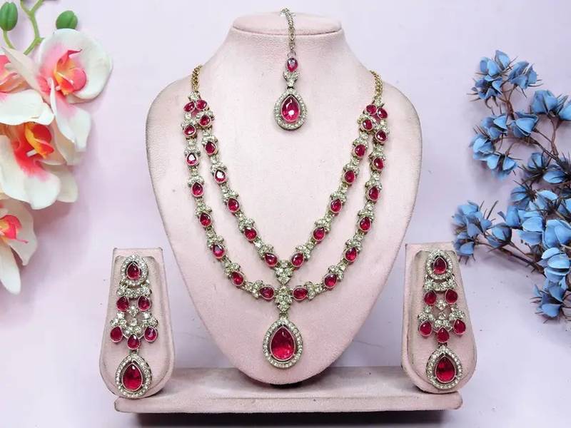 | Product Description | Shine As Bright As Your Big Day With This Necklace Set, Exquisitely Handcrafted To Capture Hearts And Camera Flashes. The Set Includes: Double Layered Teardrop Necklace With Brilliant Artificial Stones Matching Chandelier Earrings Featuring Cascading Crystal Drops Coordinating Maang Tikka With A Classic Teardrop Centerpiece High‑Quality Polished Alloy Base For Long‑Lasting Sparkle And Comfort Lightweight Design That Sits Beautifully Against Any Neckline Perfect For Weddings, Receptions, Sangeet Ceremonies, Festive Parties, Or Any Special Occasion, This Versatile Set Complements Lehengas, Sarees, Gowns, And Indo‑Western Outfits Alike. Its Timeless Elegance Makes It An Ideal Choice For Brides, Bridesmaids, And Party‑Wear Aficionados. |