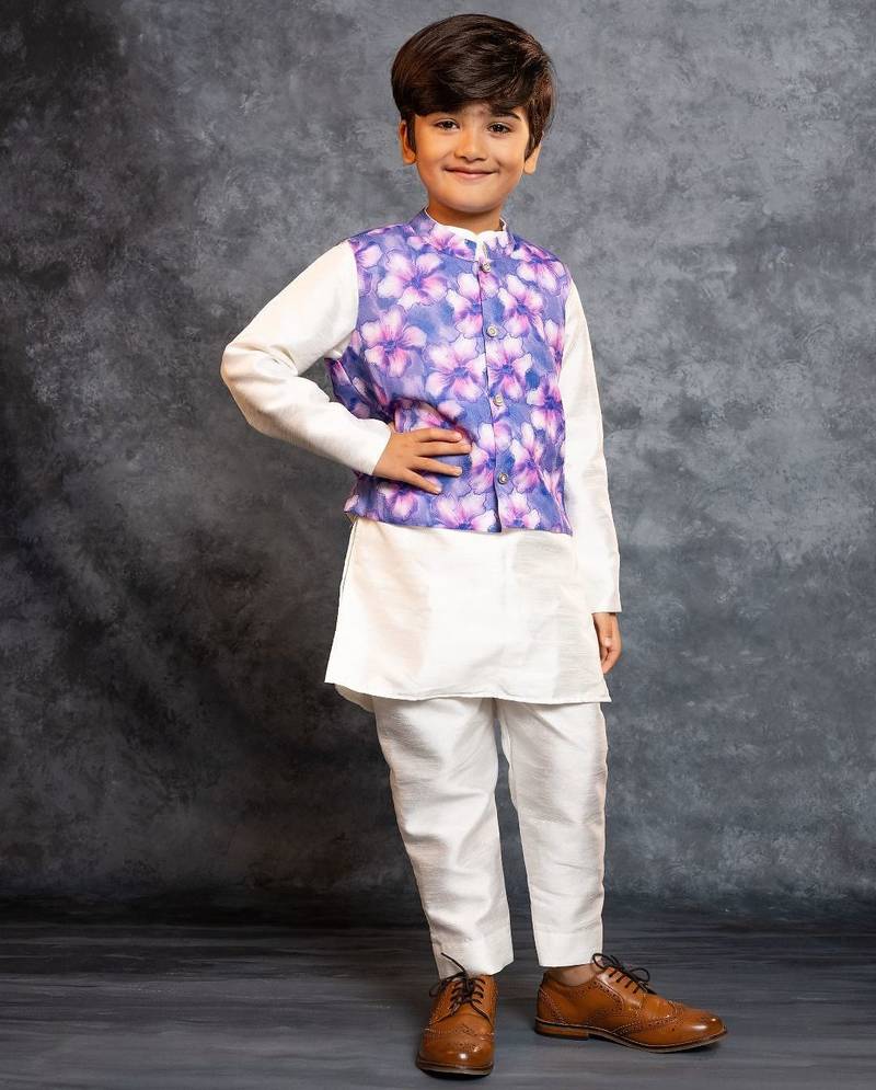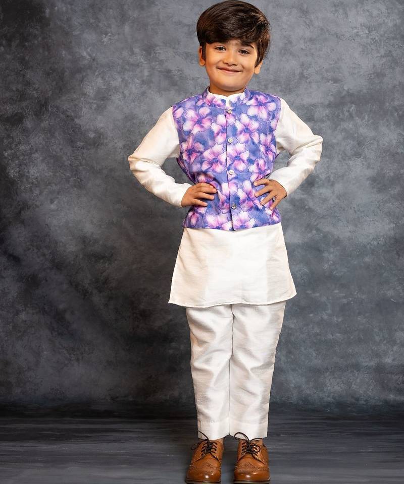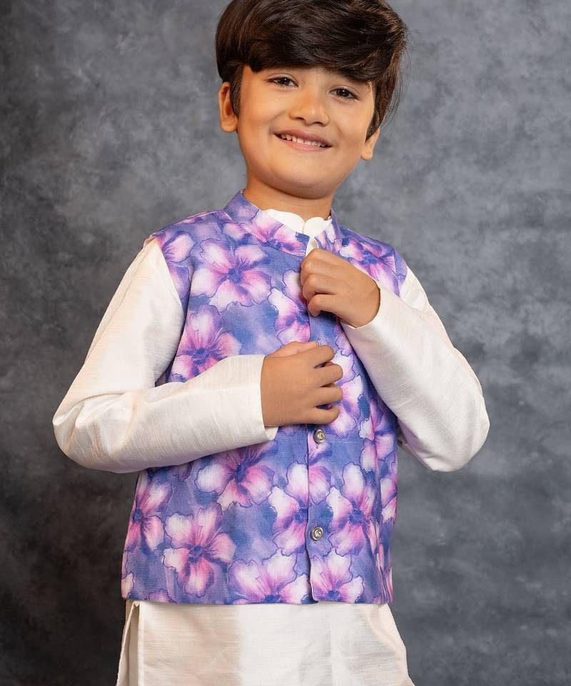 Product Description | Dress Your Child In This Elegant Kurta Pant Set With Purple Jacket. The Digital Print Design Enhances Its Modern Ethnic Appeal. Lightweight And Easy To Wear For Long Celebrations. Perfect Outfit For Festivals, Weddings, And Traditional Events. A Fashionable Ethnic Wear That Makes Your Boy Stand Out. |