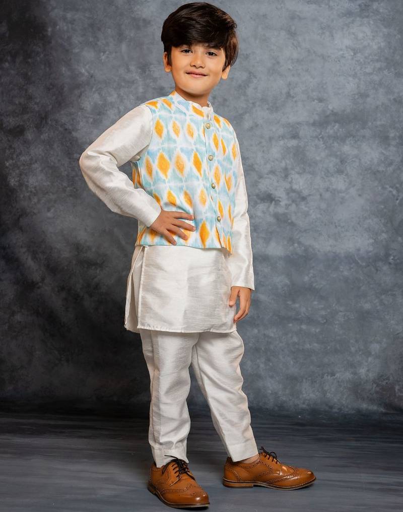 Product Description | Add Charm To Your Little One’s Festive Look With This Kurta Pant Set. The Digital Printed Sky Blue Jacket Gives A Fresh And Stylish Appeal. Crafted With Comfortable Fabric For Easy Movement And Wear. Perfect Attire For Weddings, Cultural Events, And Festivals. A Trendy Ethnic Outfit That Blends Tradition With Modern Flair. |