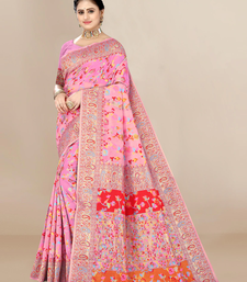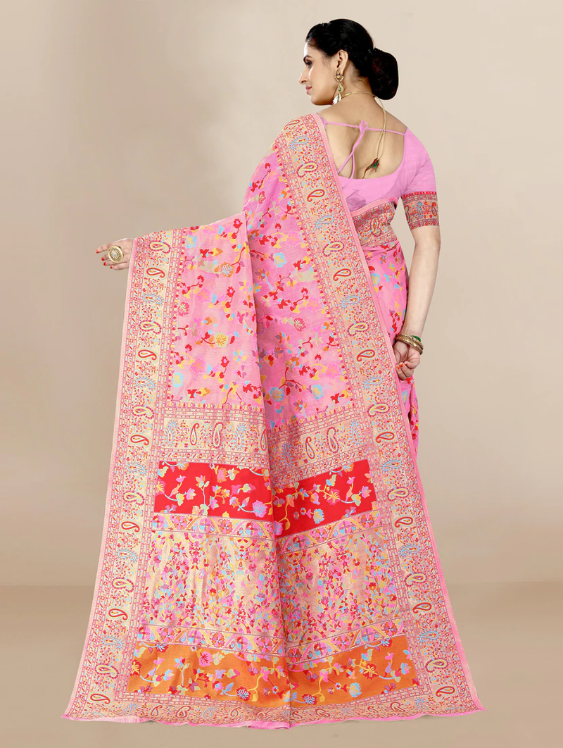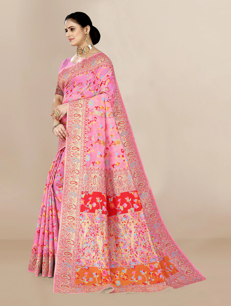 Jj's crafted elegance kashmiri pashmina saree with cotton silk base & paisley border