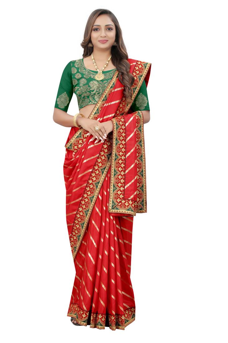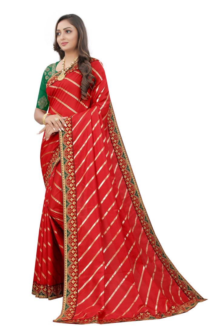 | Product Description | Saree For Stylish Casual Look In Office Or Work, Normal Occasions, Family Get Together, Regular Or Daily Use Or Gifting To Loved One Whole Saree Is Foil Printed With Jacquard Lace And Exact As Shown In Image & This Is Very Soft Fabric So Comfertable To Wear. Outstandingly Crafted, This Saree Beautified With Indigenous Leheriya Foil Gold Print With Bandhani Pattern Multi Cording Lace Border To Make Advanced Its Demand. Carry Out Designer Golden Jewellery And Block Heels To Complete Your Look. |