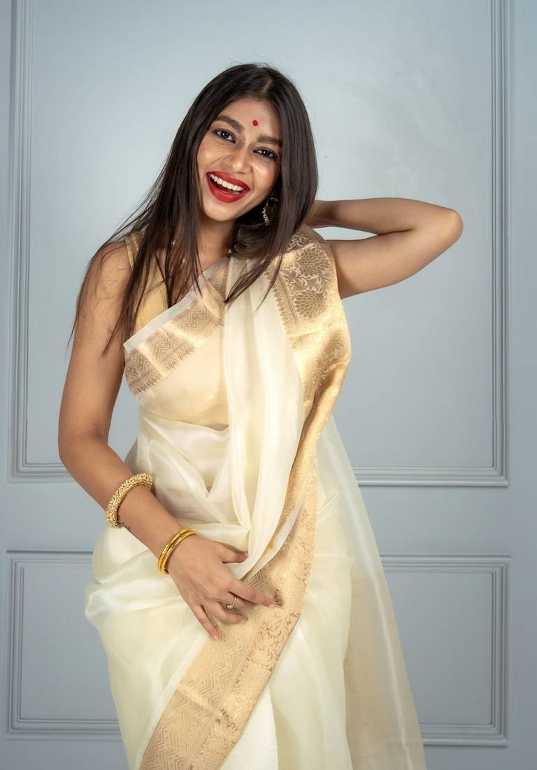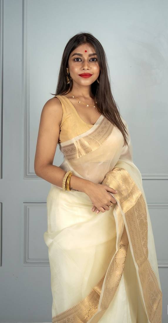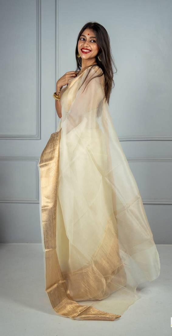 | Product Name | Women's Organza Saree With Zari Gold Woven Border For Party Or Festive Wear | |