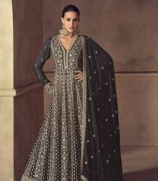 Black embroidered chinon anarkali suit semi stitched