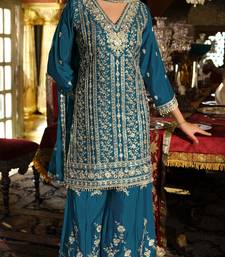 | Product Name | Blue Embroidered Chinon Free Size Stitched Palazzo Style Salwar Suit | |