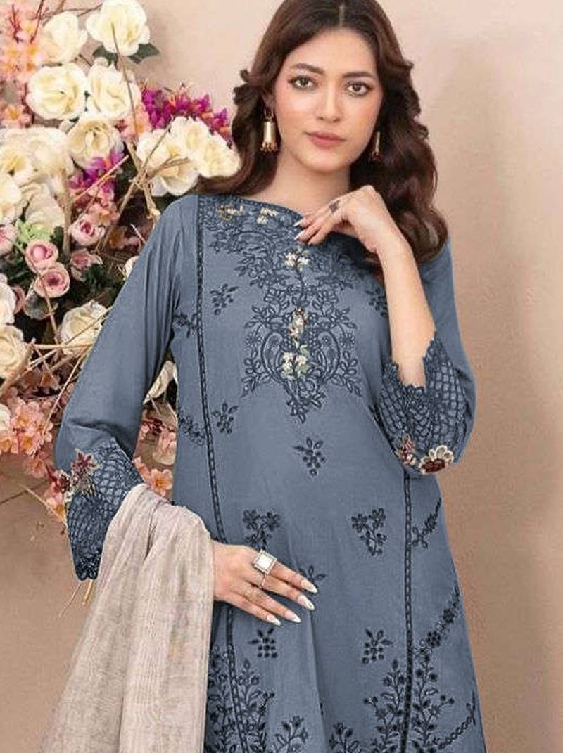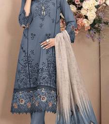 Blue embroidered cotton semi-stitched pakistani salwar suit semi stitched