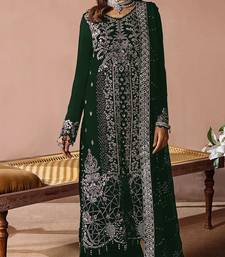 Green embroidered velvet pakistani salwar suit semi stitched