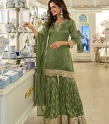 | Product Description | Enhance Your Ethnic Wardrobe With This Green Embroidered Silk Palazzo Style Salwar Suit, Perfect For Weddings And Festive Occasions. The Semi Stitched Silk Kameez Features Intricate Embroidery And Zari Work, Adding A Touch Of Elegance And Sophistication. It Is Paired With Matching Silk Palazzo Bottoms And A Coordinating Silk Dupatta For A Graceful, Comfortable Fit. Designed With Full Sleeves And A Round Neck, This Suit Blends Traditional Craftsmanship With Modern Style. Lightweight Yet Richly Embellished, It Is Ideal For Parties, Cultural Gatherings, And Celebratory Events. This Designer Salwar Suit Brings Together Luxurious Fabric, Artisanal Detailing, And A Stylish Silhouette For A Standout Ethnic Look. |