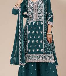 Magenta embroidered georgette palazzo style salwar suit semi stitched