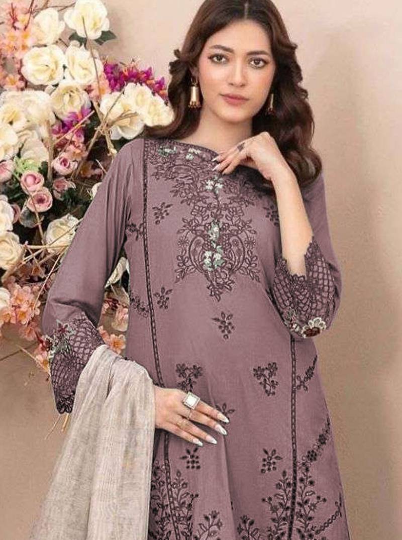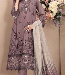 Mauve embroidered cotton semi-stitched pakistani salwar suit semi stitched