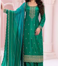 Pine green embroidered vichitra semi-stitched salwar suit semi stitched