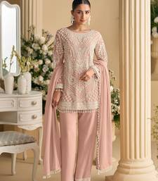 Pink Colored Pakistani Salwar Suit Is Prettified With Embroidery Work,Zari And Sequence Work As Shown Which Makes It Appear Classy. This Top Is Made Of Georgette Fabric Which Is Accompanied With Santoon Bottom,Santoon Inner And Georgette Dupatta. Women Can Buy This Suit To Wear For Their Parties And Functions.