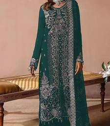 Teal embroidered velvet pakistani salwar suit semi stitched