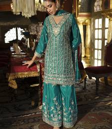 | Product Name | Teal Green Embroidered Chinon Free Size Stitched Palazzo Style Salwar Suit | |