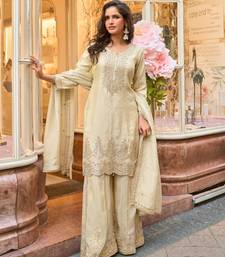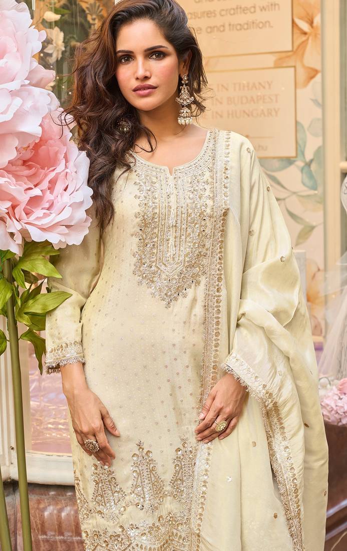 | Product Description | Step Out In Elegance With This White Embroidered Silk Palazzo Style Salwar Suit, Perfect For Weddings And Festive Celebrations. The Semi Stitched Silk Kameez Is Adorned With Delicate Embroidery And Zari Work, Giving It A Sophisticated, Luxurious Appeal. Paired With Matching Silk Palazzo Bottoms And A Flowing Silk Dupatta, This Suit Offers A Graceful And Comfortable Fit. Featuring Full Sleeves And A Round Neck Design, It Combines Traditional Charm With Contemporary Style. Lightweight Yet Richly Embellished, This Designer Salwar Suit Ensures You Stand Out At Parties, Ceremonies, Or Special Occasions, Making It A Refined And Stylish Addition To Any Indian Ethnic Wear. |