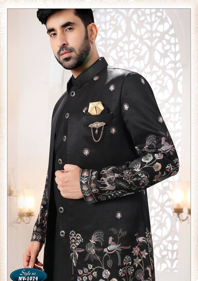 | Product Name | Mens's Black Silk Thread And Sequence Embroidery All Over Indo Western | |