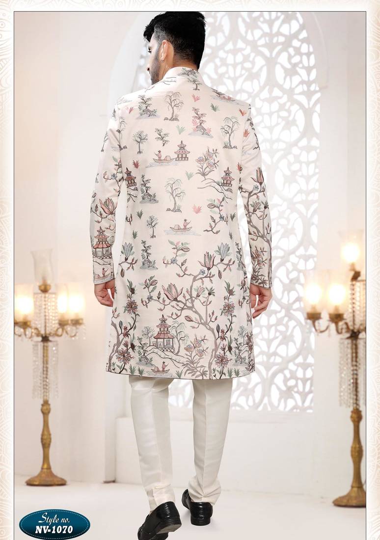 | Product Name | Mens's Cream Malai Silk Thread And Sequence Embroidery All Over Indo Western | |