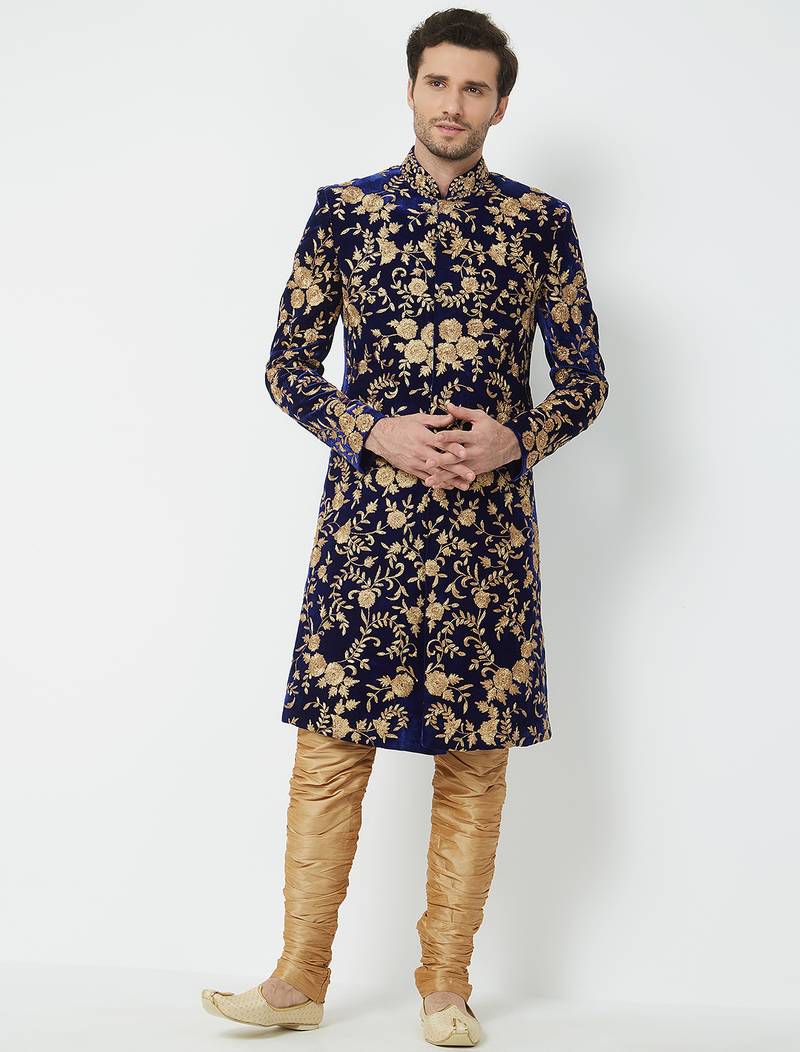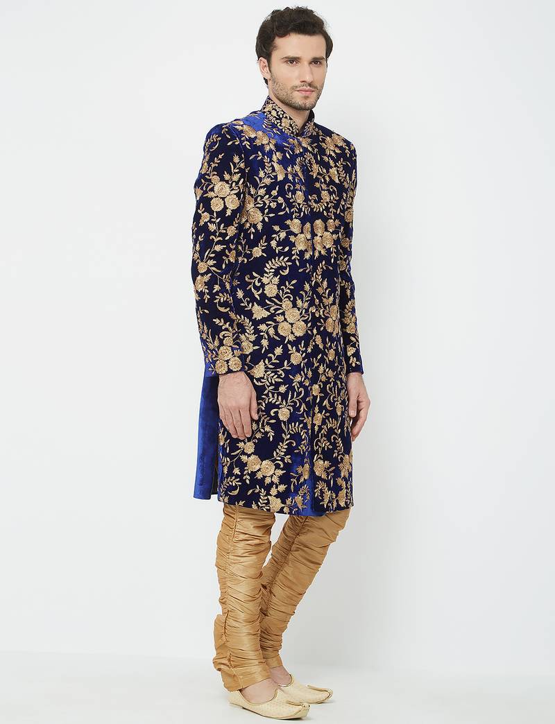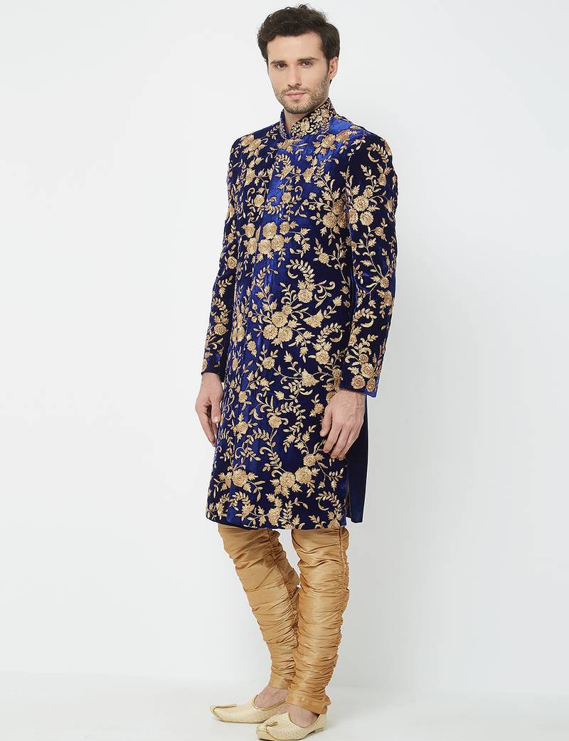 | Product Name | Navy Blue Art Silk Straight Embroidery With Handwork Sherwani For Men's | |