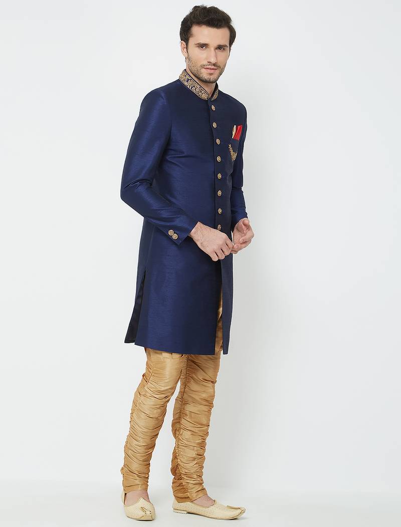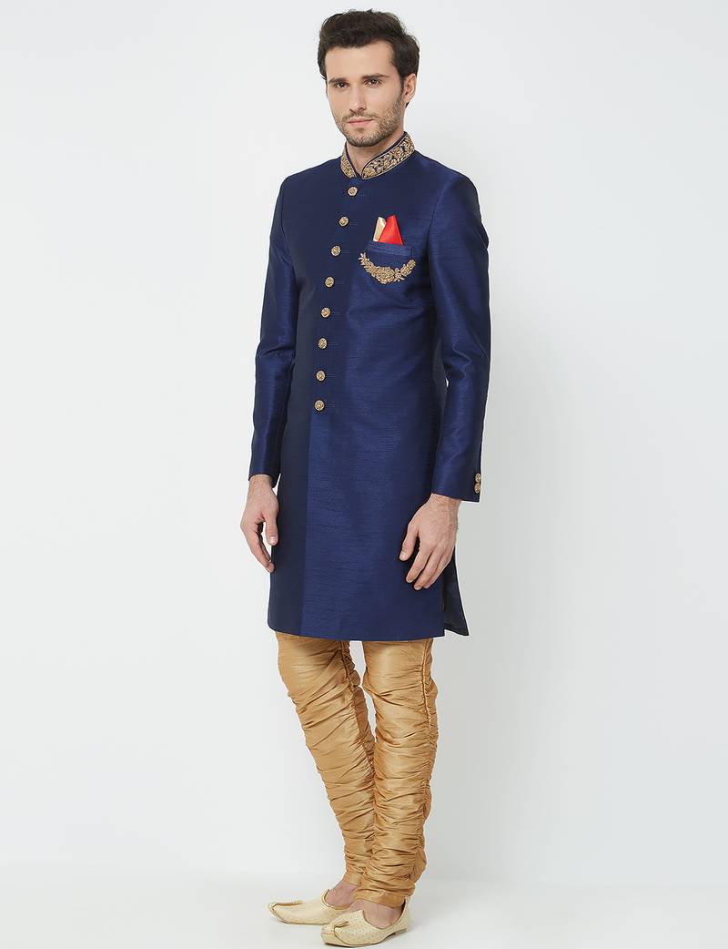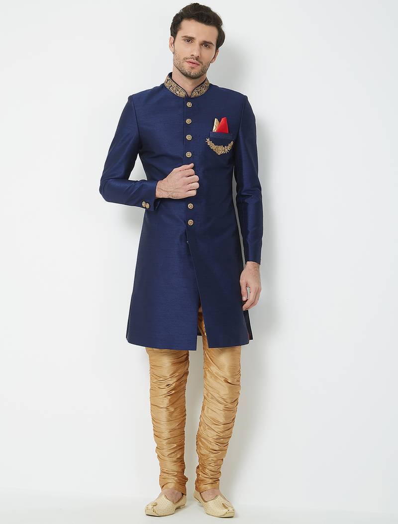 | Product Name | Navy Blue Art Silk Straight Handwork Sherwani For Men's | |