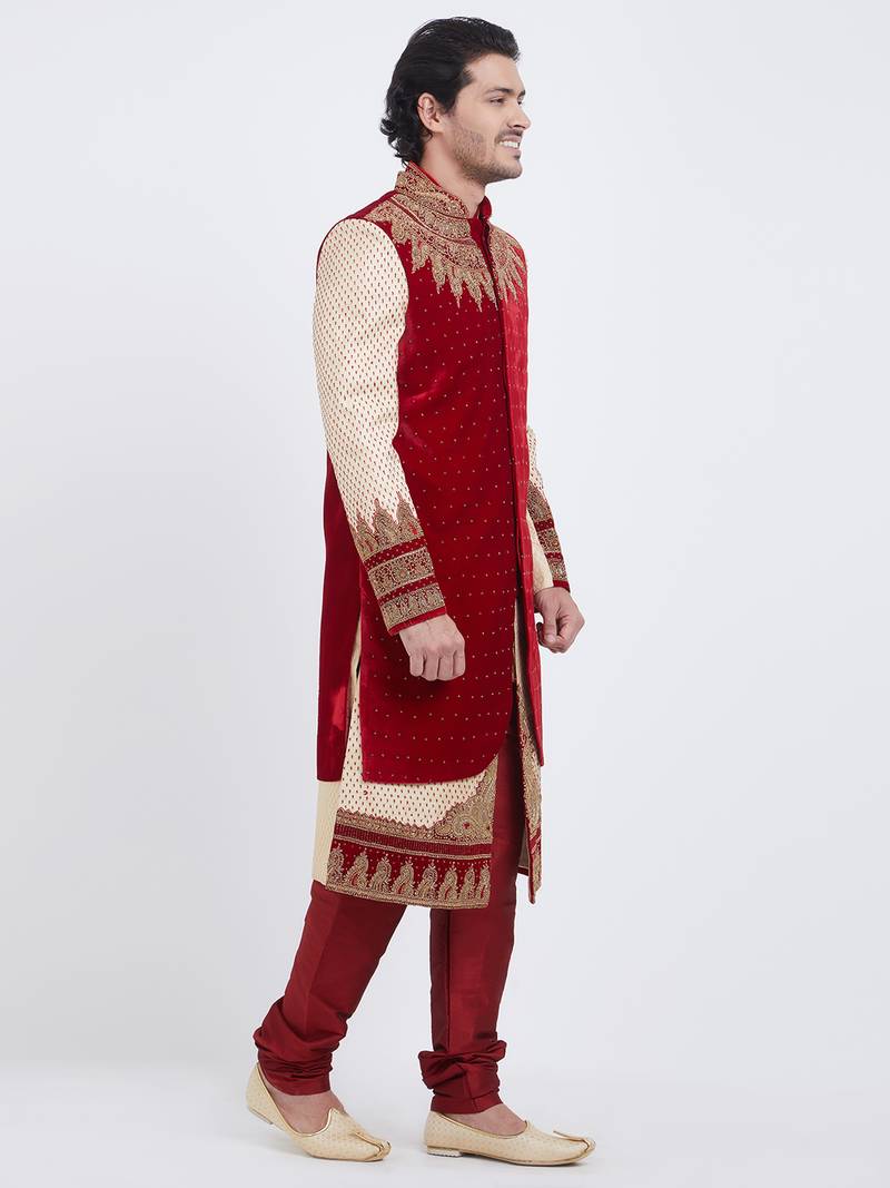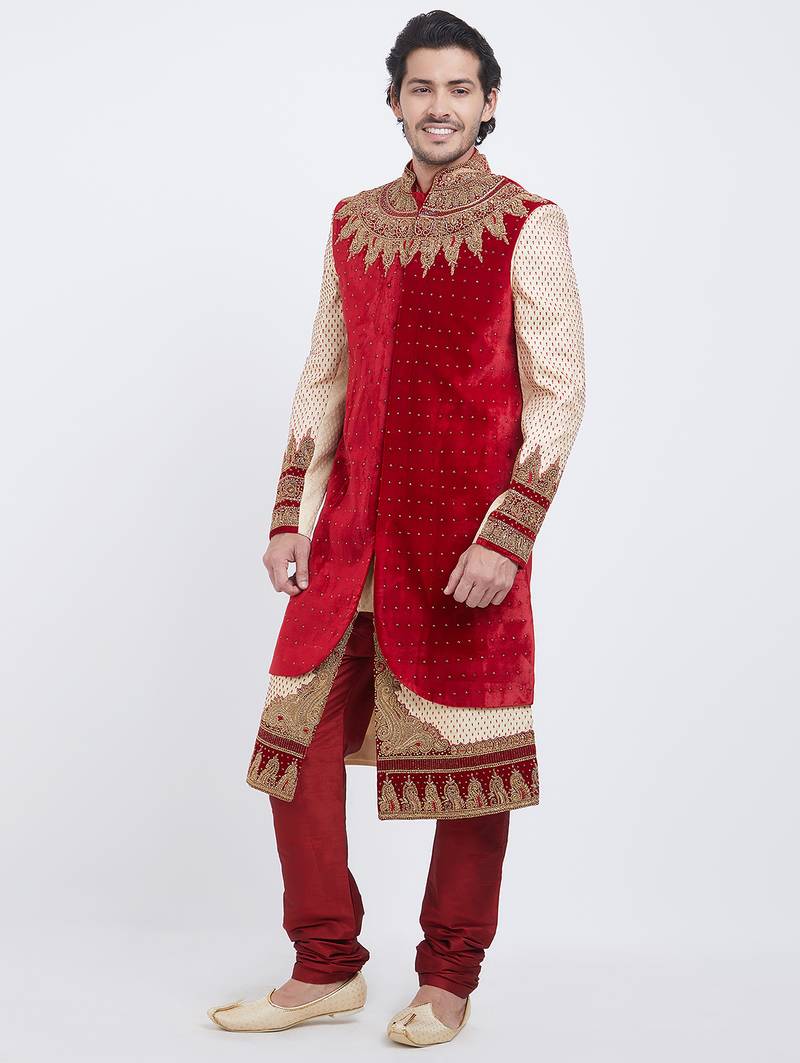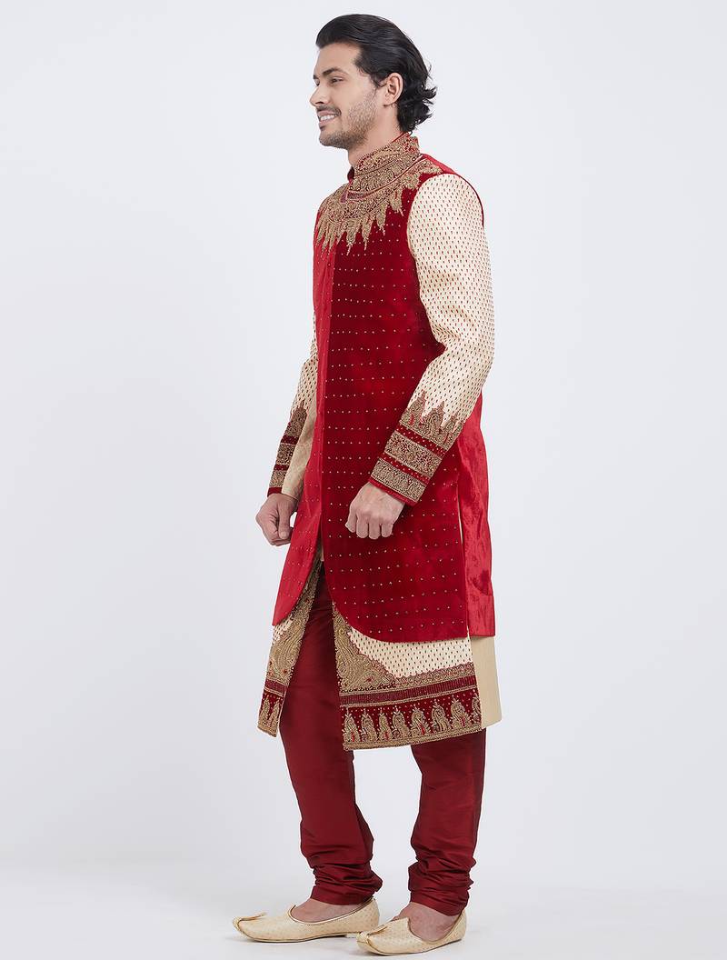 | Product Name | Red Brocade Straight Handwork Sherwani For Men's | |