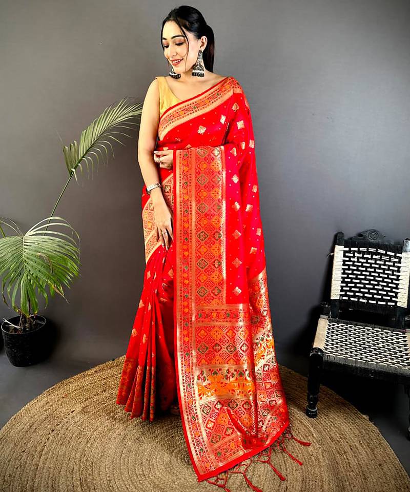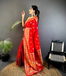 Red banarasi lichi silk blend red meenakari weaving saree with unstitched blouse
