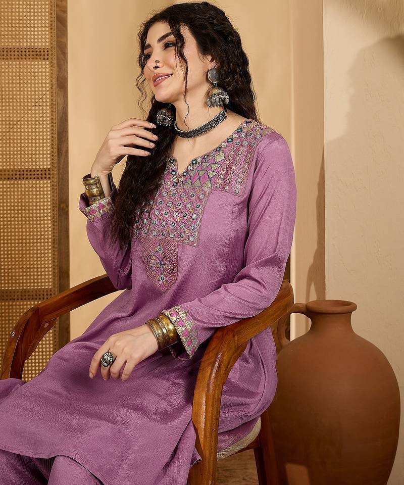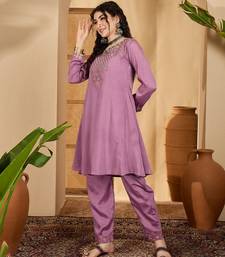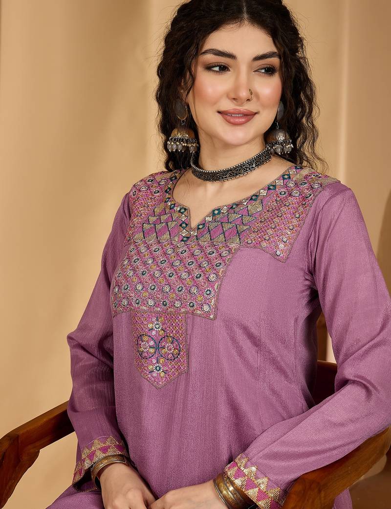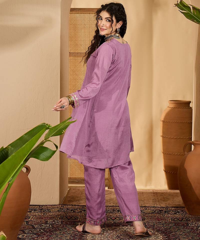 | Product Name | Women Chinon Silk Embroidered Purple Kruta Set | |
