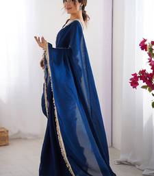 Women fandy silk nblue zari lace work saree