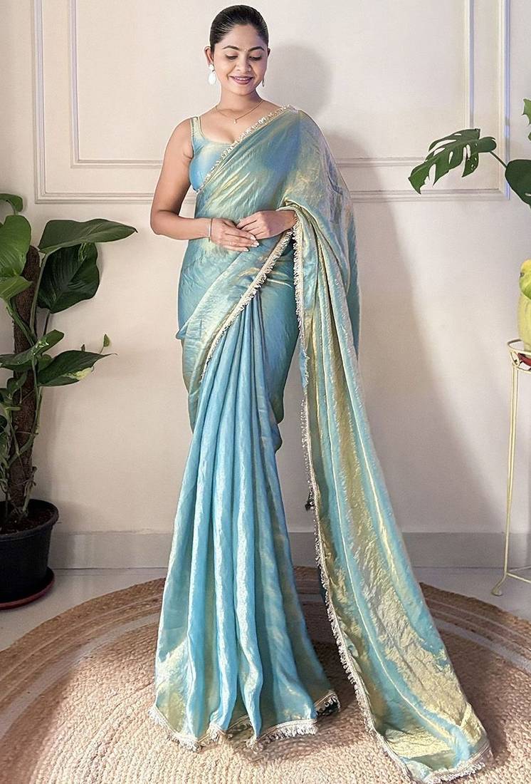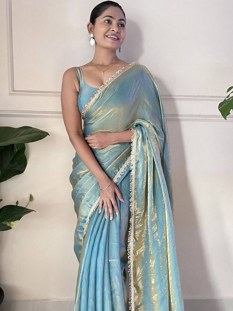 | Product Name | Women Fandy Silk Teal Zari Lace Work Saree | |