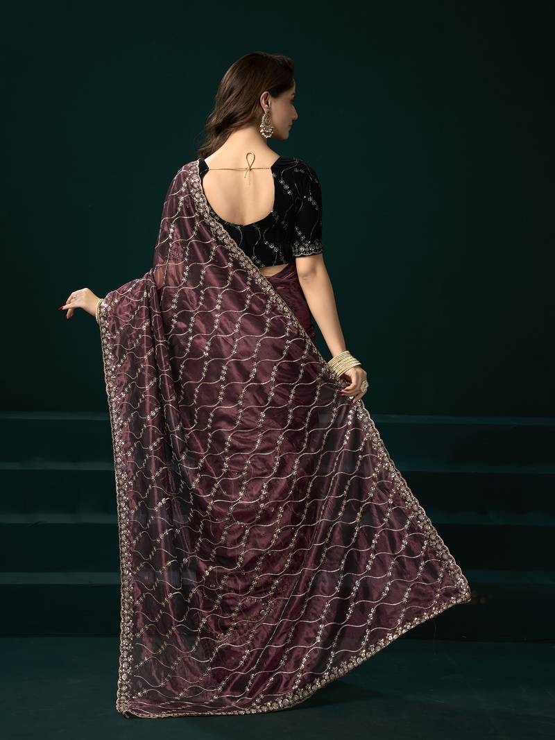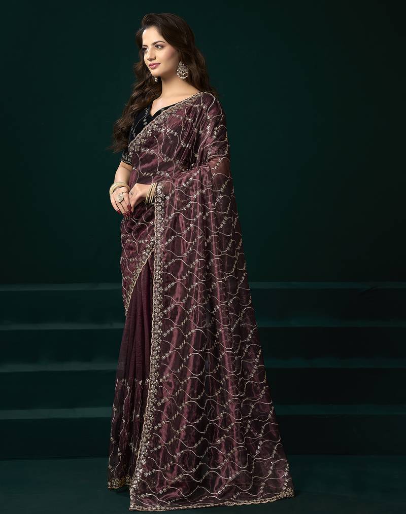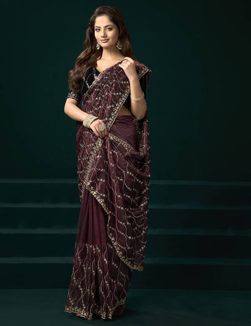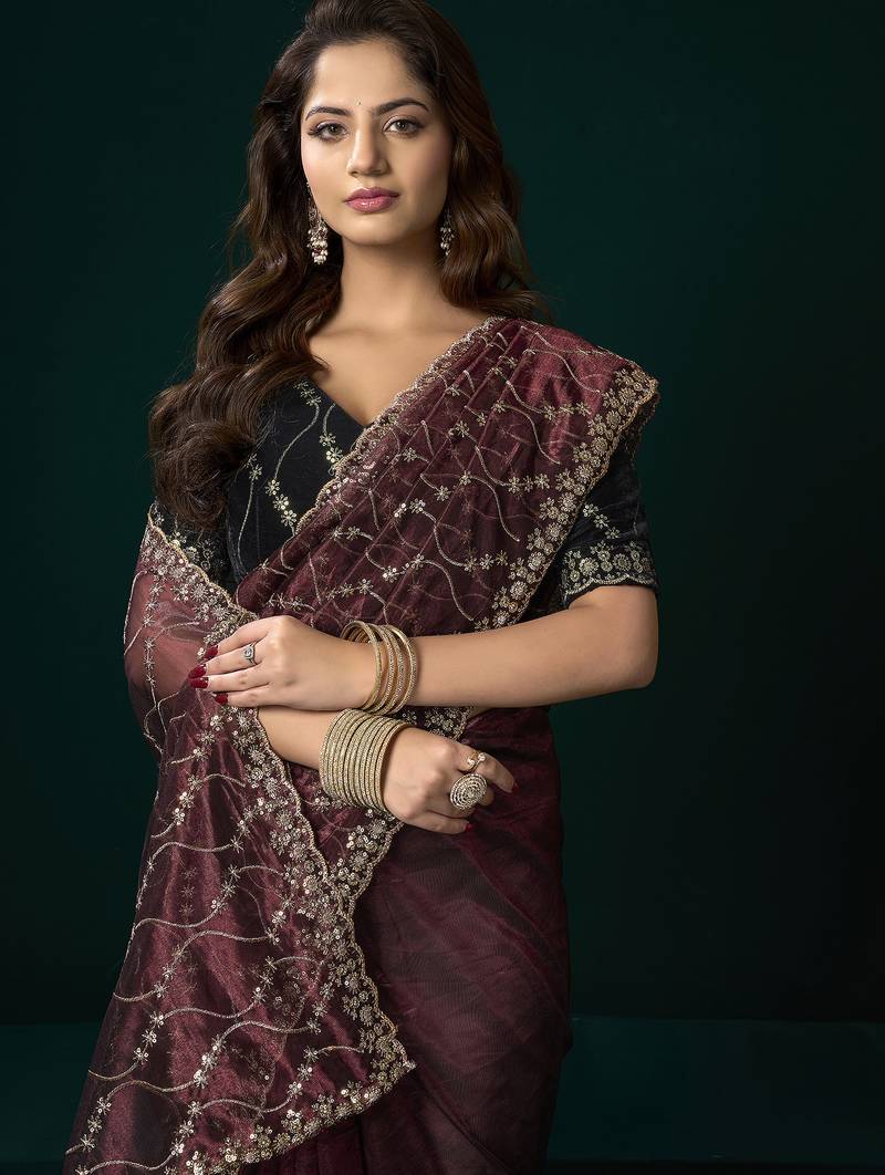 | • | Saree | : | Color- Maroon / Fabric- Net |